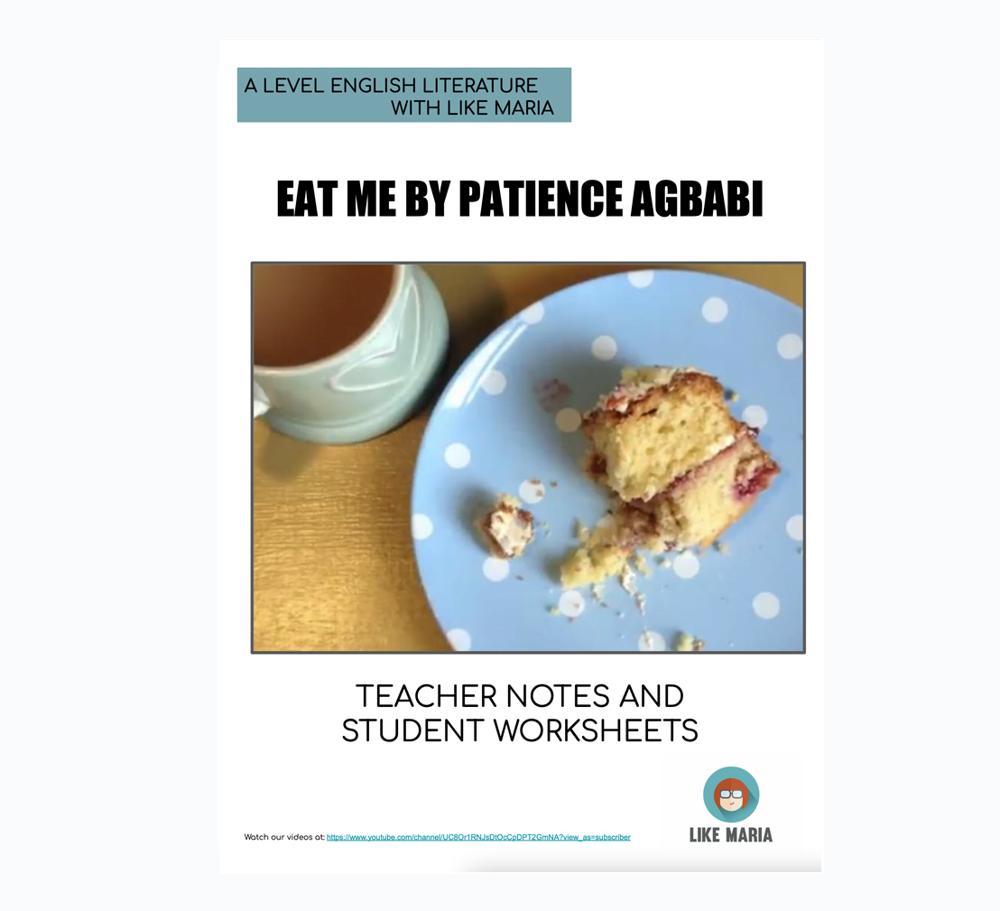 8 page booklet featuring teacher notes and a selection of student worksheets based on the poem ‘Eat Me’ by Patience Agbabi from the ‘Poems of the Decade’ anthology. Contains ideas for tackling unseen poetry, sample essay writing, extension tasks and notes for teachers to support you through the delivery of this poem.